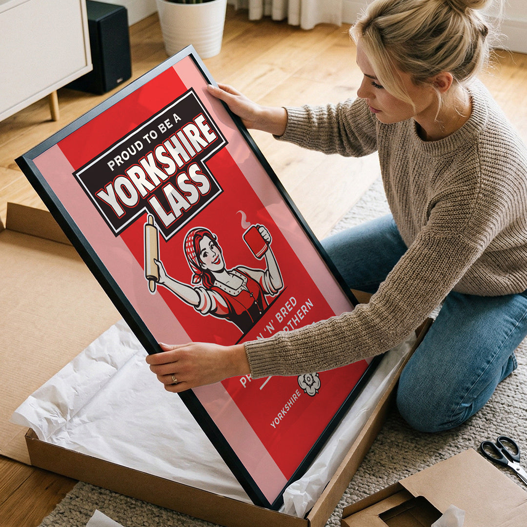 Our Proud Yorkshire Lass print is made for kitchens, living rooms, hallways and anywhere that deserves a touch of proper northern pride. It’s a brilliant statement piece for anyone who’s Yorkshire through and through — whether born here or simply adopted by the county in spirit.
