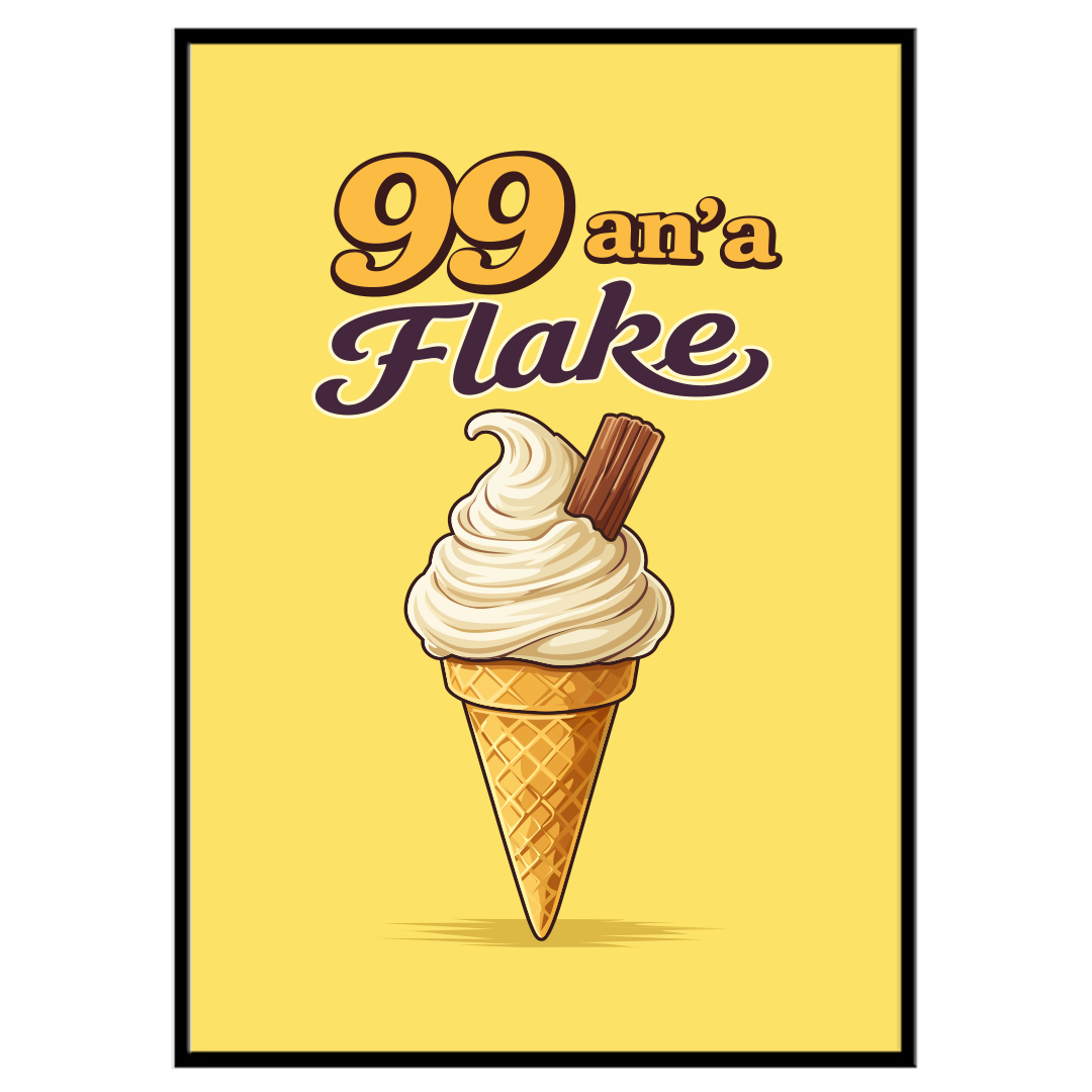 For anyone who’s ever queued at the kiosk with sand between their toes and loose change in hand, 99 An’a Flake is a joyful nod to proper Yorkshire seaside days. Bright, nostalgic and full of coastal charm, this design captures that unbeatable feeling of unwrapping a classic 99 topped with a crumbly chocolate flake.