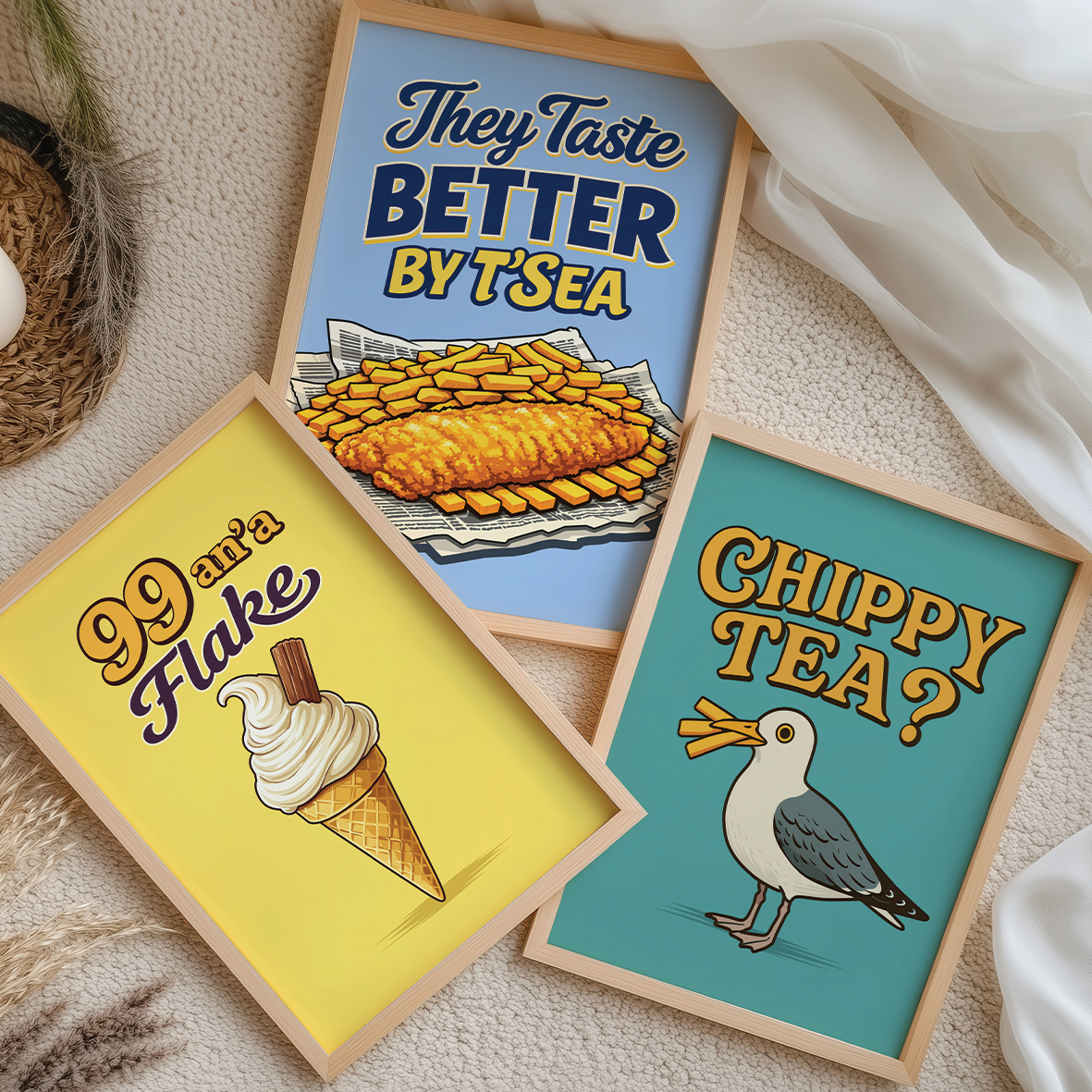 Our 99 An’a Flake print is made for kitchens, beach huts, caravans and homes that love a splash of seaside nostalgia. Ideal for anyone who treasures childhood holidays on the Yorkshire coast and believes a 99 always tastes better by the sea.