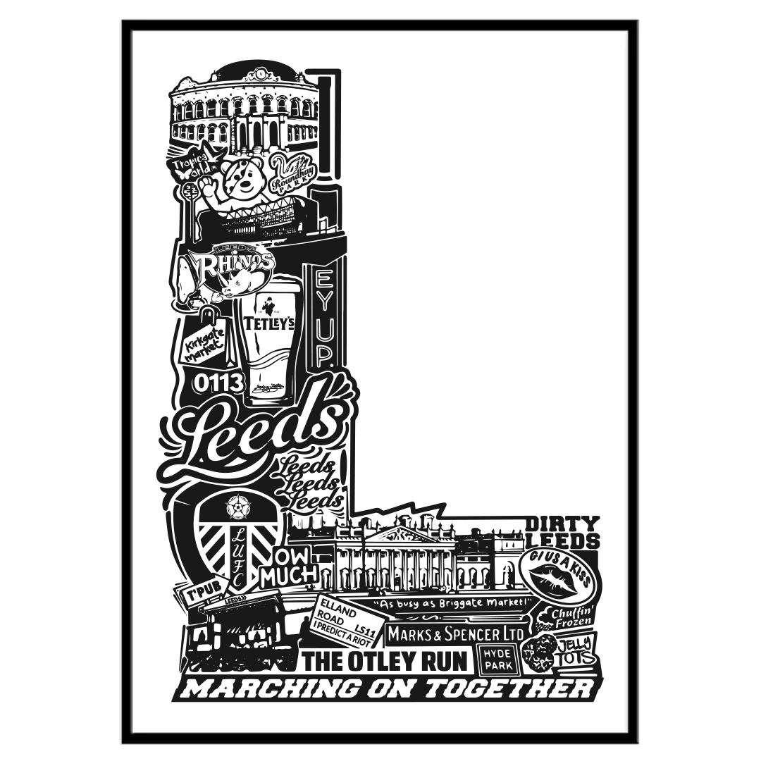 Celebrate all things Leeds with this bold ‘L for Leeds’ print, packed with iconic elements that pay tribute to the city. Shaped like the letter L, the design features Leeds sayings, landmarks, local favourites, and the city’s famous 0113.